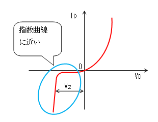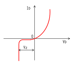 ツェナー・ダイオードの静特性をグラフで表すと下記のようになります。