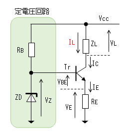 定電圧回路からみて、トランジスタのベース端子が(定電圧回路の)負荷に相当します。