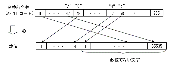 | 2000 | DTOB | Y: 文字列のアドレス | Z: 変換した数値 | 変数Yからの文字列を符号なし整数に変換し 変数Zに返します。数値に変換出来ないときは Z=0が返されます。 |