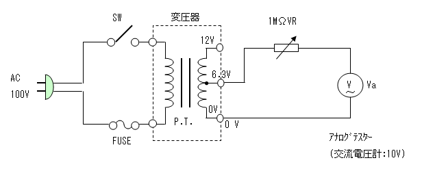 アナログ・テスターの測定は次項(ブリッジと直流電圧計による交流電圧測定)