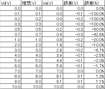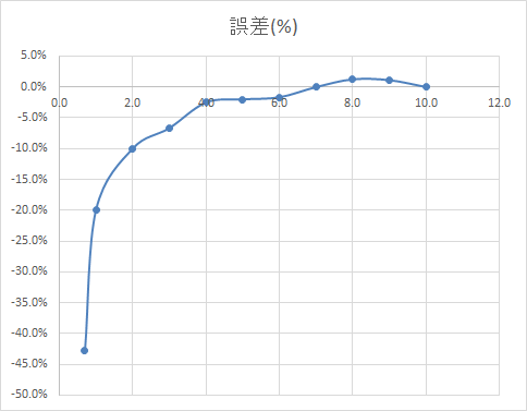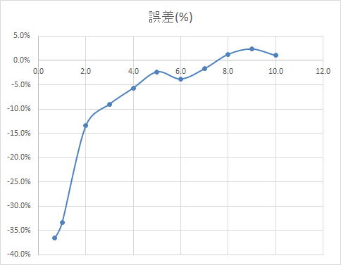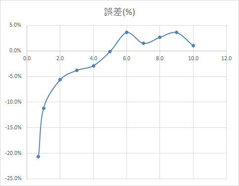 ちなみに、フルスケール10Vに対する相対誤差はそれぞれ2%、1%となります。