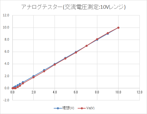 ディジタルテスタ⇔アナログテスタの測定値比較グラフ