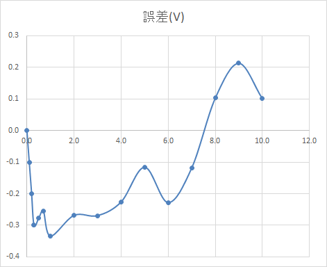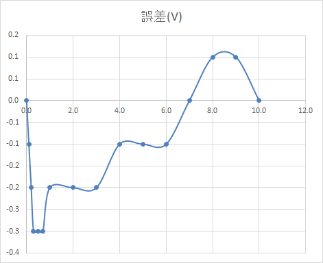 誤差の最大0.3Vはフルスケール10Vに対して3%となるので、通常は補正する手間を