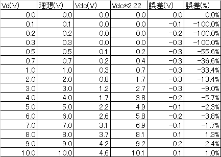 波形率(2.22)をかけると一般的に0.1〜0.2[V]くらいの誤差は避けられないでしょう。