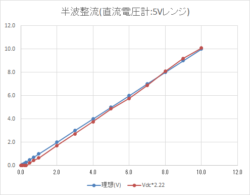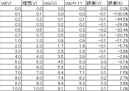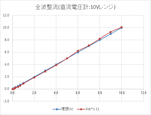 誤差は最大0.3Vとなりました。整流用ダイオードの順方向電圧降下により