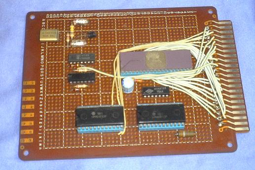 手前、二つのICはメモリです。スクラッチ・パッドとして使用しているこのメモリの記憶容量は