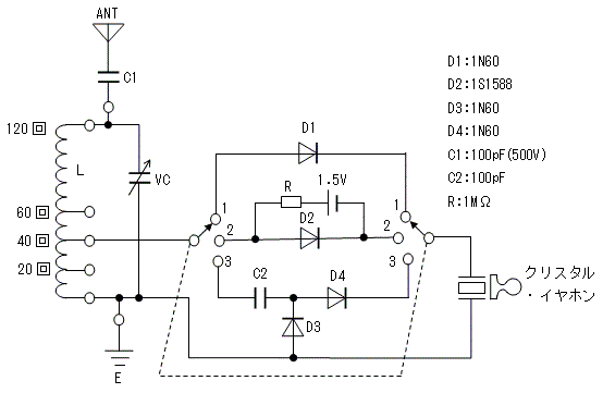 (構成2)ゲルマニウム・ラジオとしては一番多い構成だと思います。