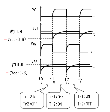 Tr1とTr2が交互にON/OFFを繰返しながら