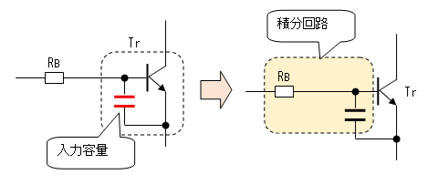 ベース抵抗(RB)により積分回路が形成されるため、スイッチング速度が