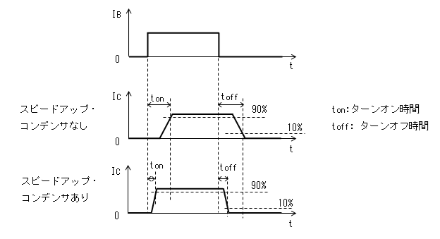 トランジスタ・スイッチをベース電圧でON/OFFさせる際、ベースが持つ容量と