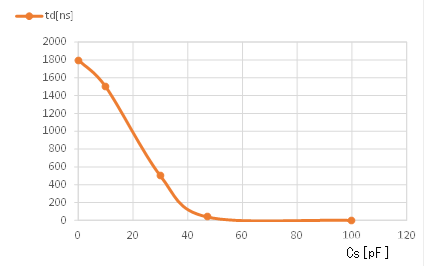 コンデンサーの容量を変えながら出力波形の遅延時間を測定し、
