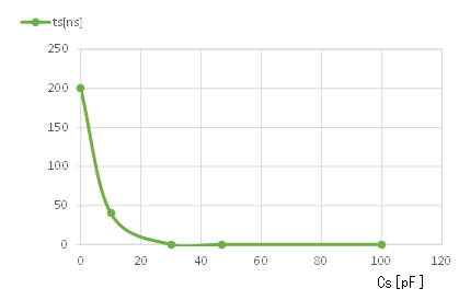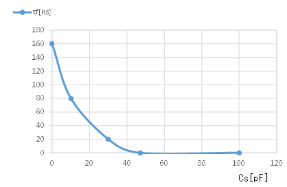 Vsのtrは100[ns]、tfは80[ns]くらいでしたが、多少、
