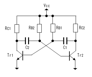 安定点を持たないために非安定マルチ・バイブレータと呼ばれています。