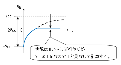 一般的にVcc>0.6[V]なので、ほぼ-Vccに低下します。