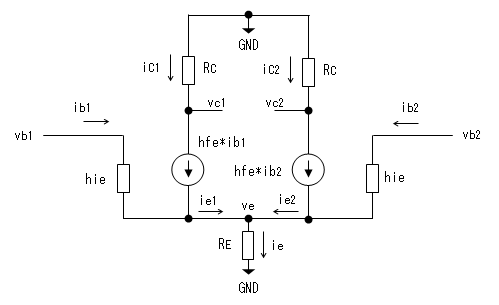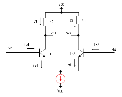 >トランジスタ差動増幅回路の解析