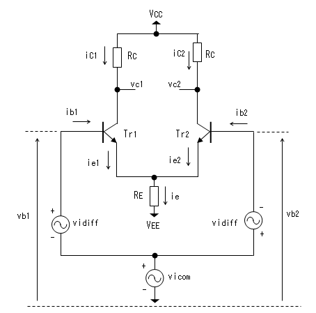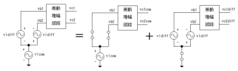 差動増幅回路は線形回路なので重ね合わせの原理が成り立ちます。