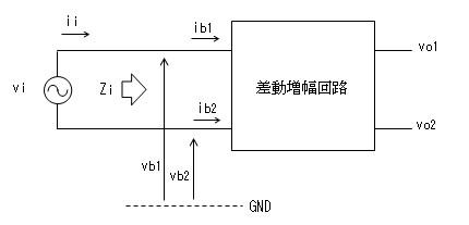 ふたつの入力間のインピーダンスZiは下記となります。