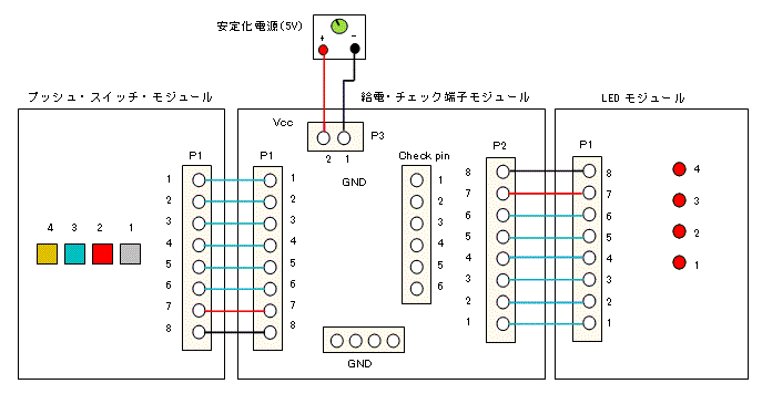 ディジタル回路実験ツール>プッシュ・スイッチ・モジュール(4bit)