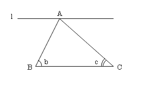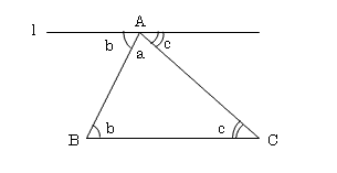 点Aを通り、辺BCに平行な線lを引く。