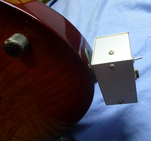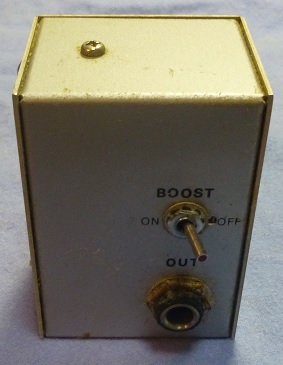 ギター・ケーブルのハイ落ちを防ぐためのバッファ・アンプです。 電圧ゲインはなく、FETを使用した単純ソース・フォロワーです。 あまり効果は感じられませんでした。 電源の切り忘れに気を使います。(2005/12/18) 写真、差し替え(2020/02/29) ギター(プラグ)側外観です。 ジャック側の様子です。電源スイッチをOFFにするとバッファーはスルーになります。 ギターに接続したときの様子です。少し邪魔くさい。(^^;