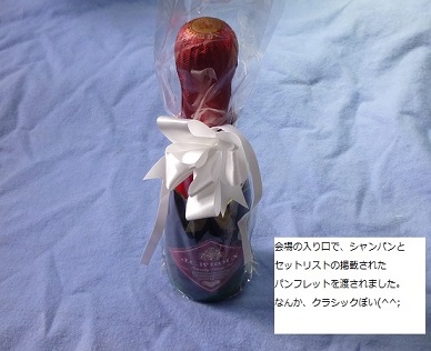 さて、肝心のライブですが、入口でなんとシャンパンと