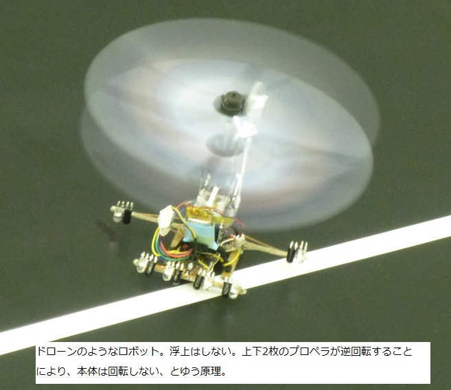 2個のプロペラで後方に風を吹き出しながら前進するロボット。