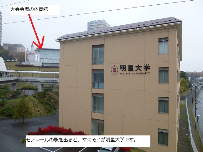 「中央大学・明星大学」駅で降りると、駅のすぐ隣が明星大学です。