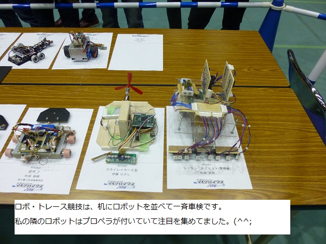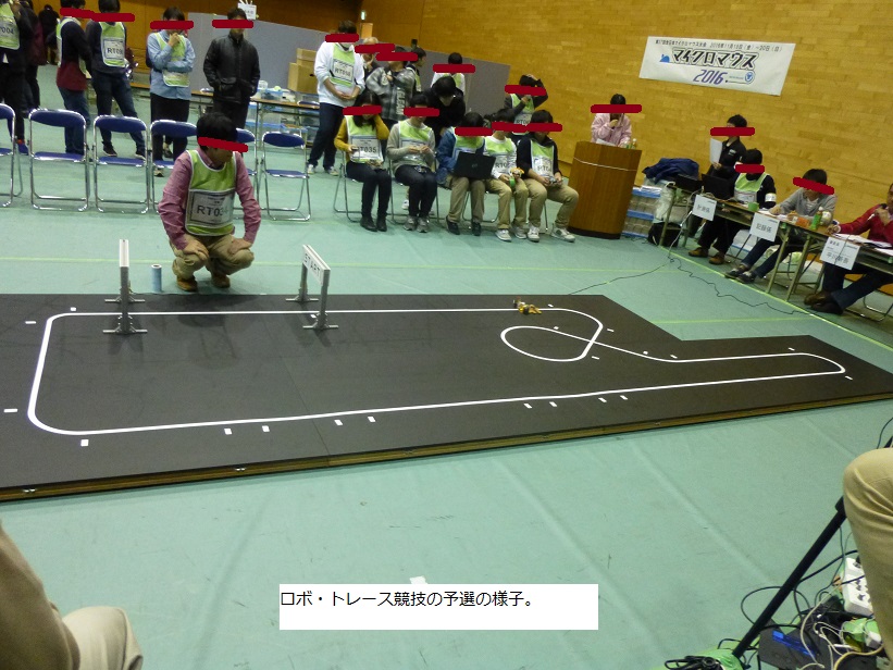 開会式後、10:30よりロボ・トレース競技予選開始。お昼近くになって
