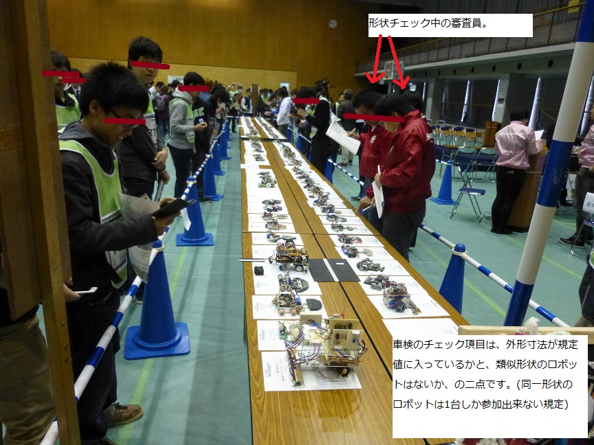 昨年と同じく、壁際に荷物を置き、車検のためにロボットを机上に