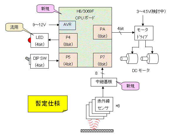 しました。この中で、モータ・ドライブ、DIP-SW、赤外線センサ基板は