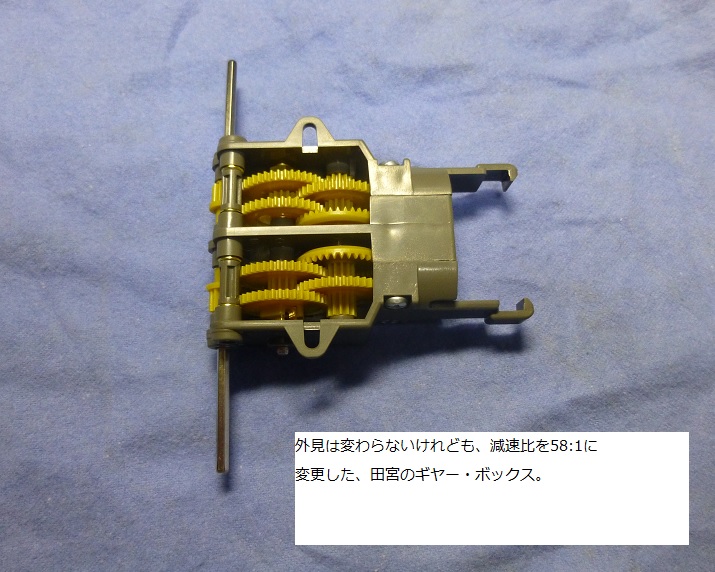 (1)田宮のギヤ・ボックスの減速比を下げて