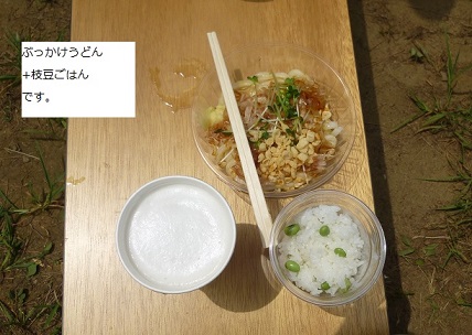 - ぶっかけうどん+枝豆ごはん(森のキッチン)。