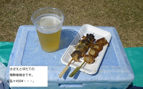- さざえとほたとの海鮮串焼き。ちょっと高いかも。