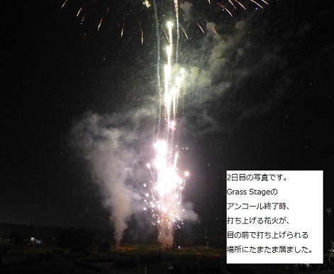 - グラス・ステージのライブ終焉の花火。た〜まやぁ。。