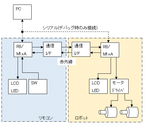 - R8マイコンの入出力ポート割り当て(ロボット側)