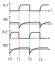 となります。C1はほぼVccに充電されているため、VB2はほぼ-Vccとなり