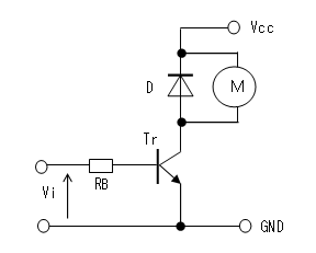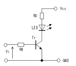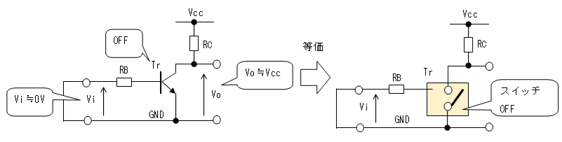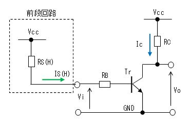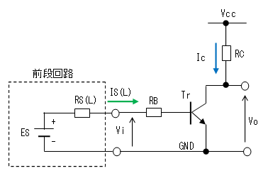 トランジスタ・スイッチは直流結合された増幅回路とみなすことも出来るので、入力電圧(Vi)を