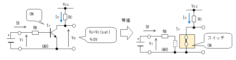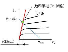 で見ると、ON状態とゆうのは動作点が飽和領域に