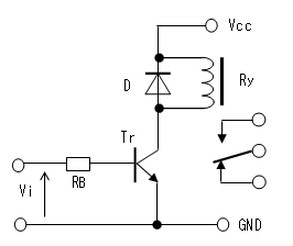 直流リレー(Ry)のON/OFFを制御する回路です。