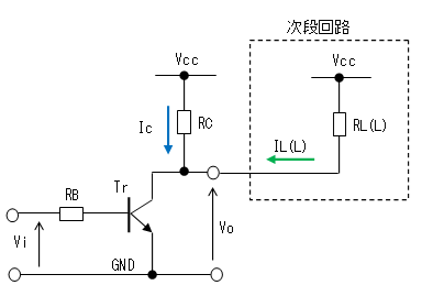 トランジスタのコレクタに流れ込む電流はIcの他に負荷側からIL(L)が