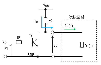 トランジスタは遮断状態ですのが、電流Icは全て次段側の電流IL(H)となります。