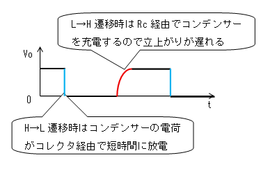 コンデンサーの電荷は抵抗Rcを経由して充電されるのでVoはすぐには上昇しません。