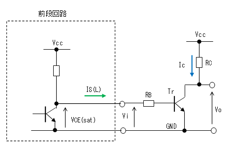 前段のトランジスタが確実に飽和し、Viが十分低くなるよう注意します。